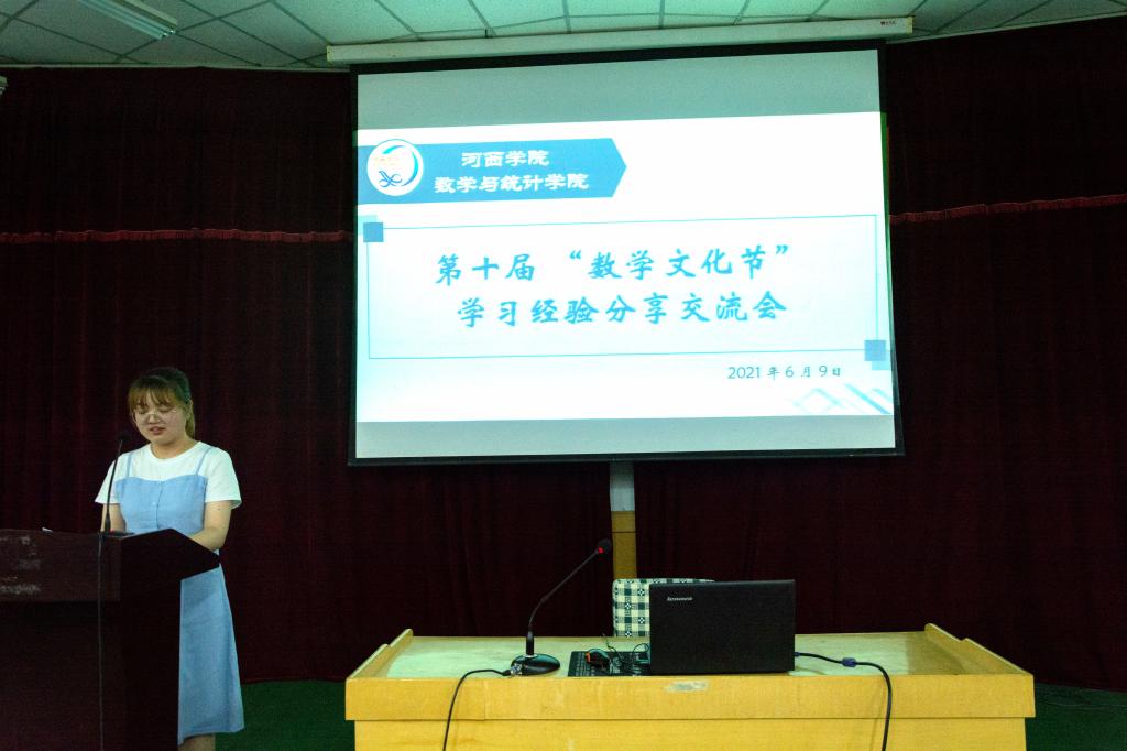 2021年6月9日下午4:30,数学与统计公司第21届“祁连学术活动月”暨第十届“数学文化节”员工学习经验分享会在学术一厅举行,数学与统计公司冯建生、苗君豪、武天伟、杨银芳、甘萌5名同学先后做了报告,公司全体教师和100多名员工参加了报告会。