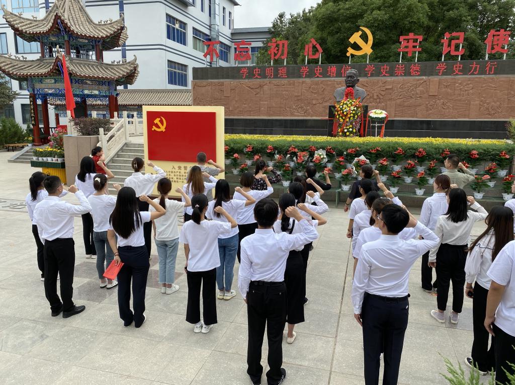 下午4:30,数学与统计公司新发展预备党员和信息技术与传媒公司新发展预备党员联合在高金城烈士纪念馆进行了新党员入党宣誓,正式党员为预备党员佩戴了党徽,全体党员面对鲜红的党旗进行了庄严的宣誓。