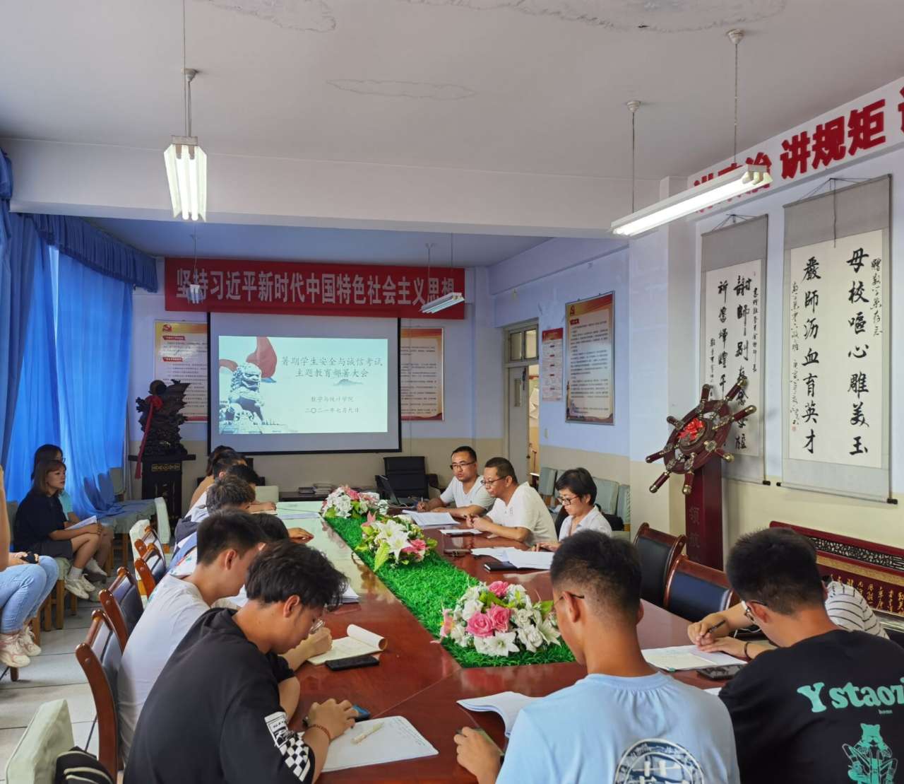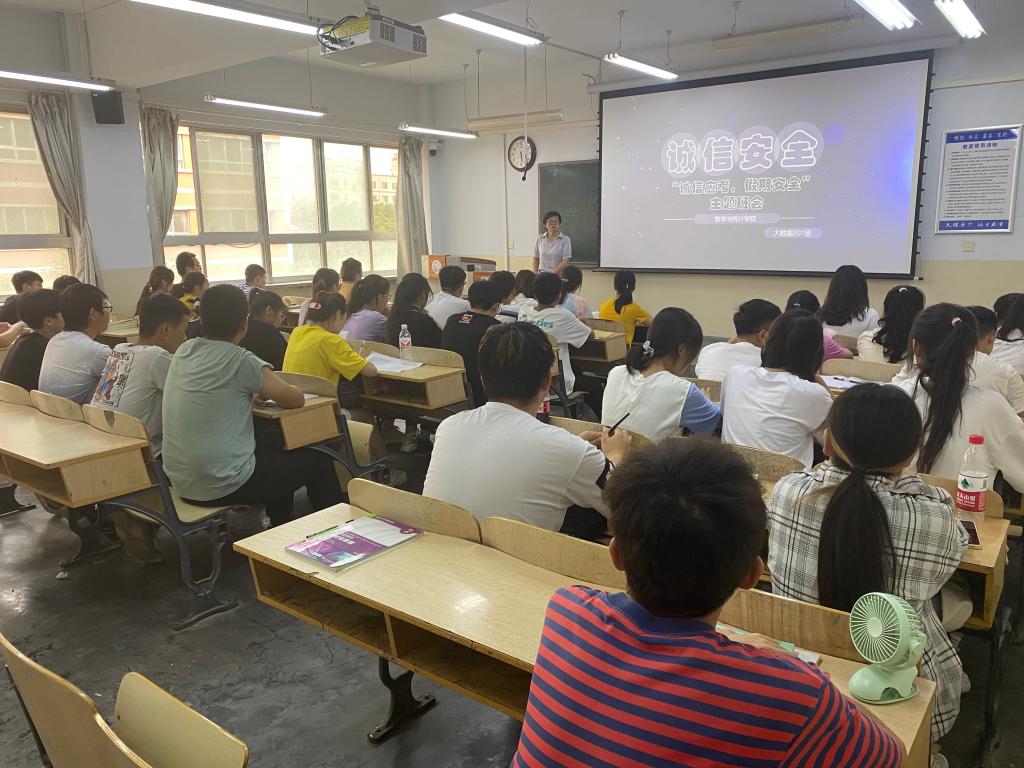 会后,数学与统计公司又召开专门会议对暑期社会实践安全工作做了强调;各班级根据公司安排,分别召开了以诚信考试、假期安全为主题的主题班会,院领导列席主题班会进行督查、指导。