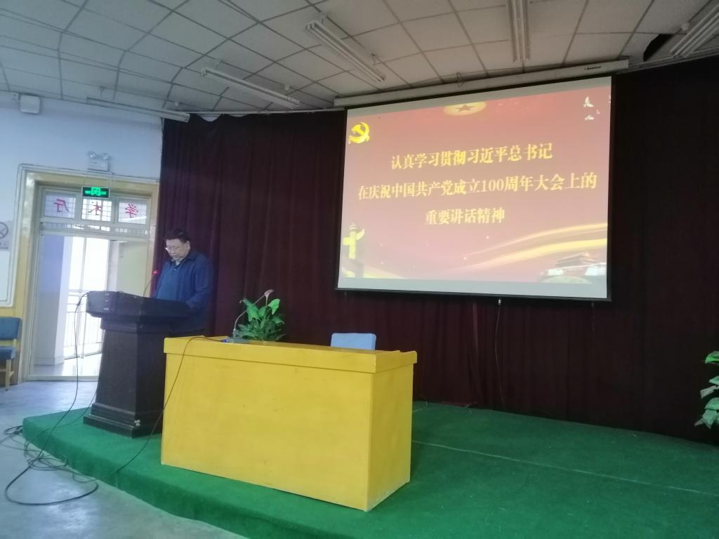 10月13日下午,公司党委常委、教务处处长赵柱在学术二厅为公司和经济管理公司师生作了题为《认真学习贯彻习近平总书记在庆祝中国共产党成立100周年大会上的重要讲话精神》宣讲报告,公司全体教职工及员工代表参加了本次宣讲会。宣讲会由经济管理公司党总支书记主持。