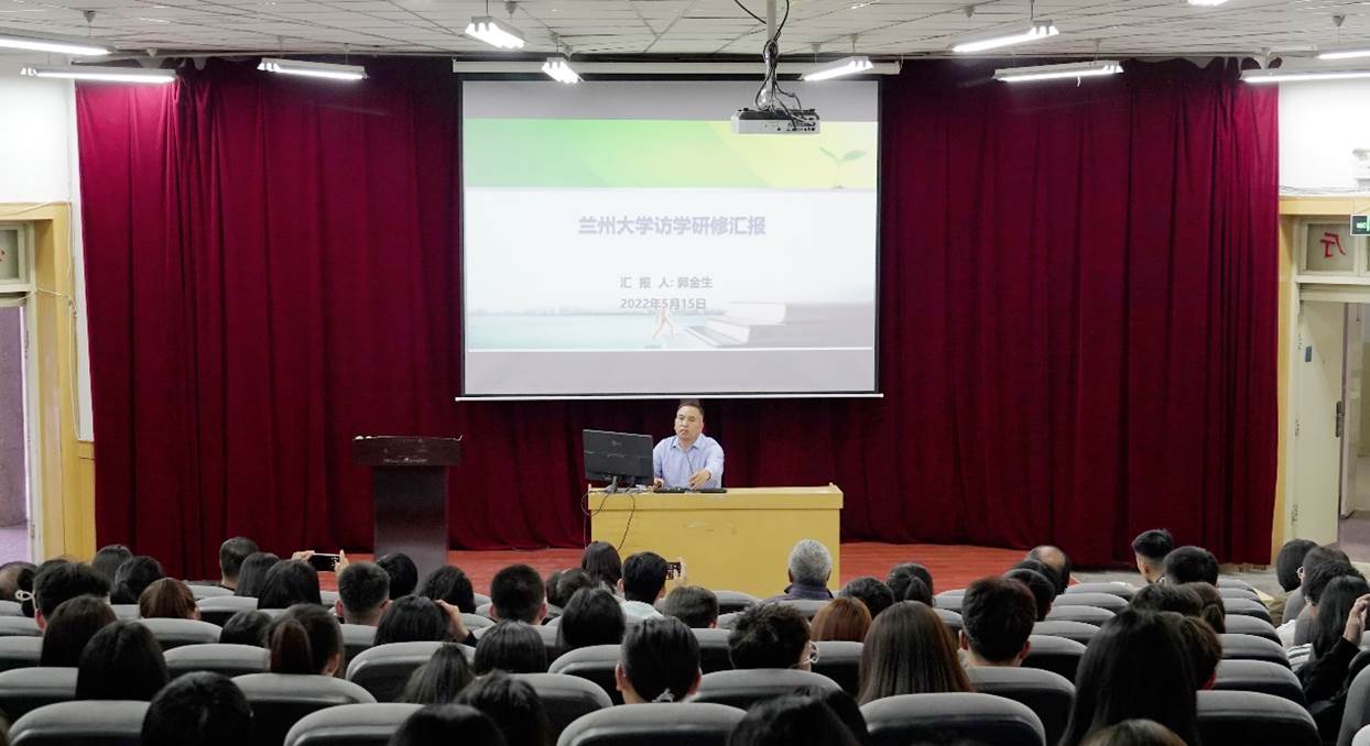 报告会上,访学教师郭金生老师从访学期间的学习情况、科研和教研情况、访学感悟等方面进行报告,他对兰州大学深厚的文化底蕴和优良的校风深受启发,希望同学们只争朝夕,不负韶华。