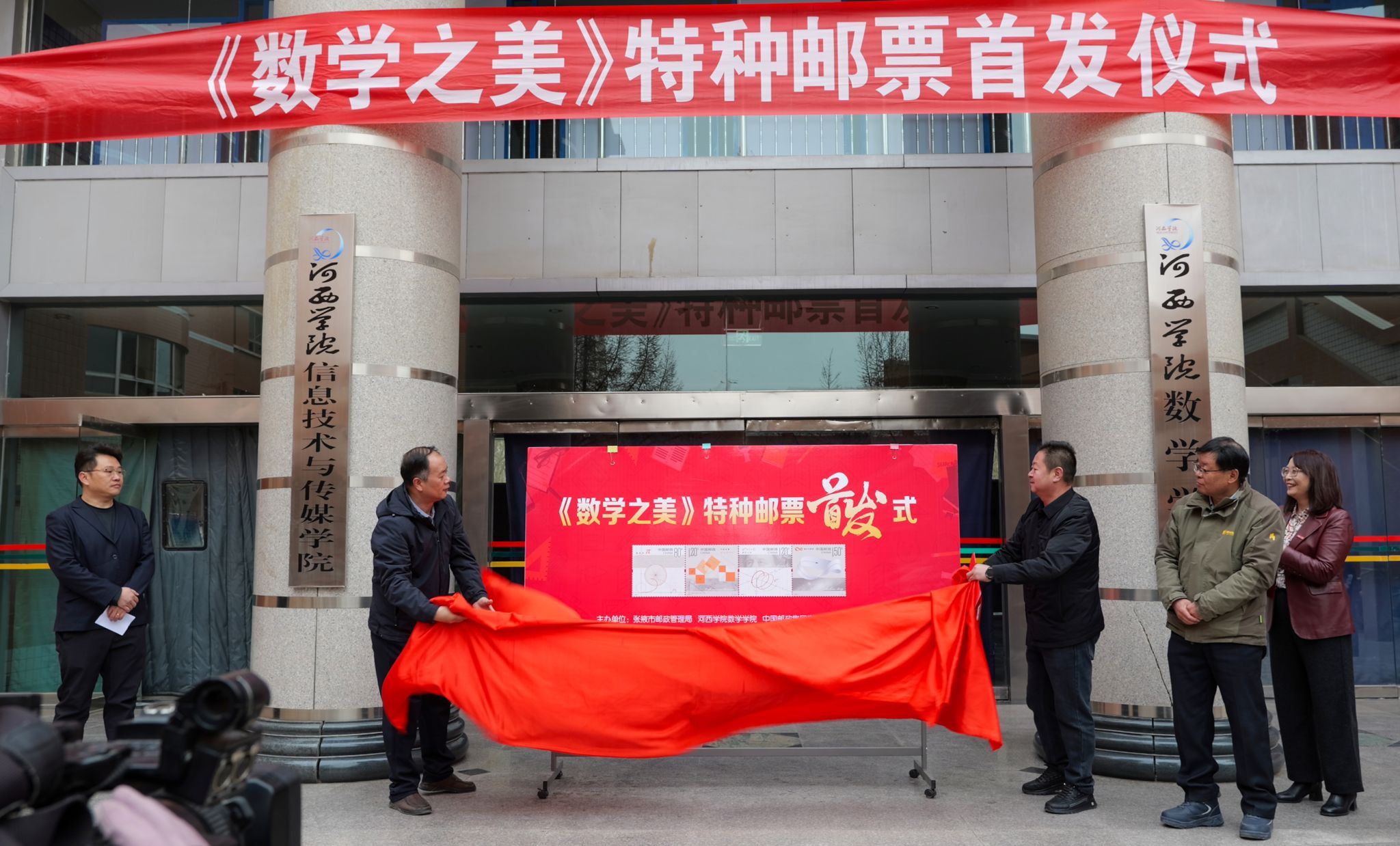 活动现场,随着红色幕布揭开,四枚关于数学题材的邮票正式与广大师生及集邮爱好者见面。该套邮票选题开放、设计语言现代,邮票印制工艺更是围绕表现内容延伸,依托画面效果进行渲染,集艺术性、科学性、防伪性于一体。